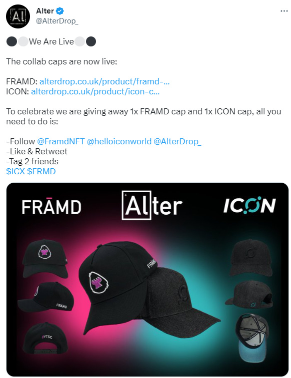 Limited edition ICON and FRAMD caps dropping soon - @AlterDrop_